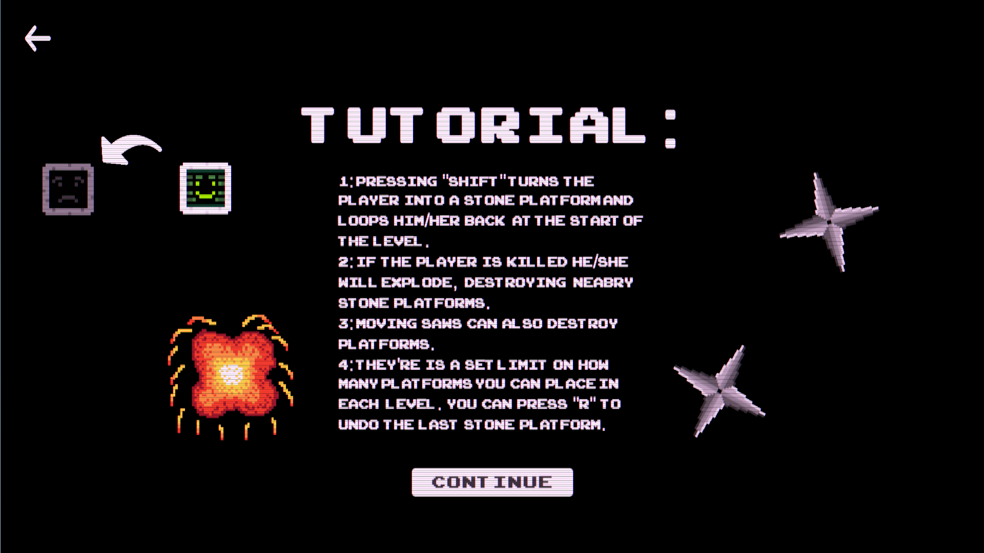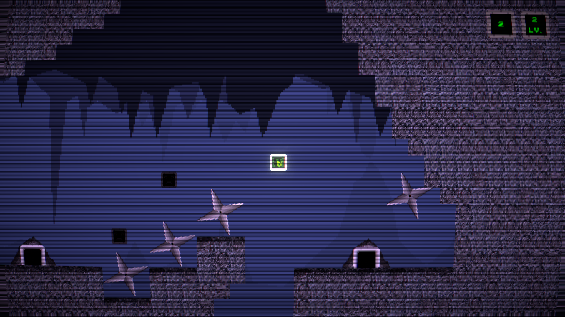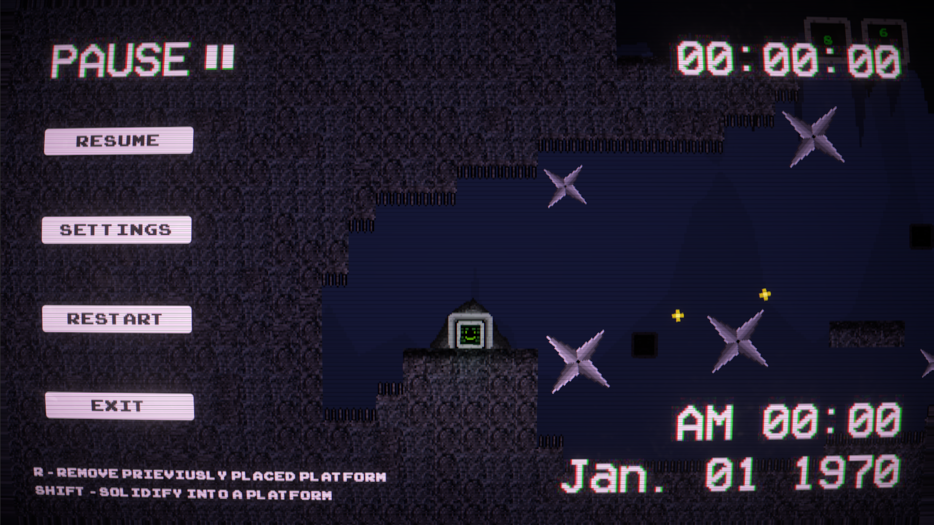 To progress you will need to make platforms out yourself and maneuver around spikes and saws.